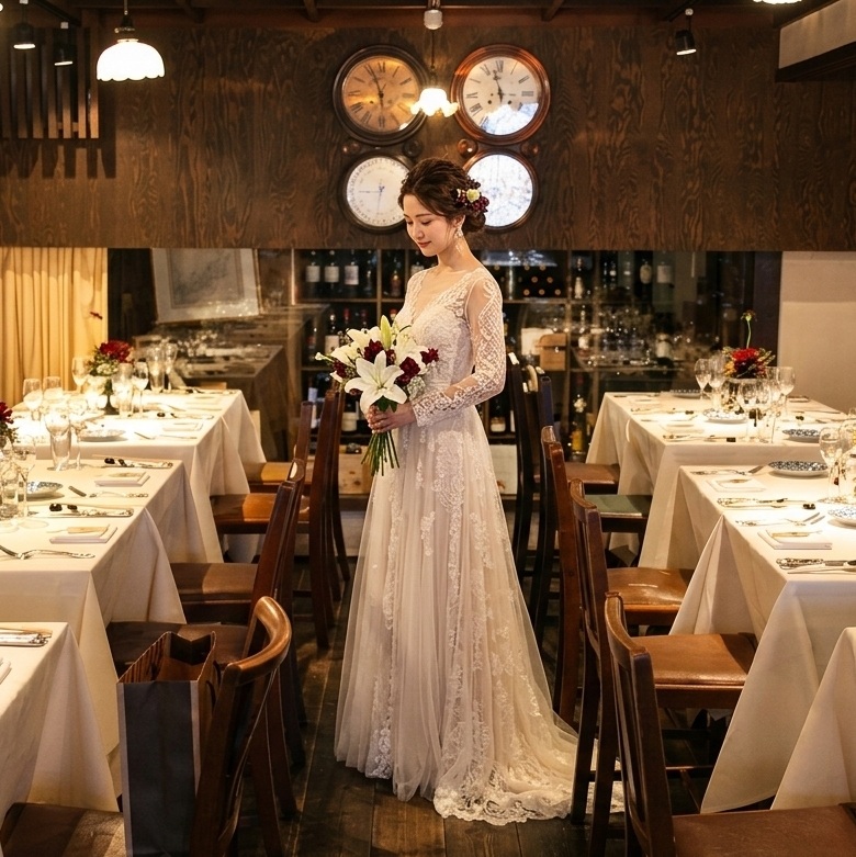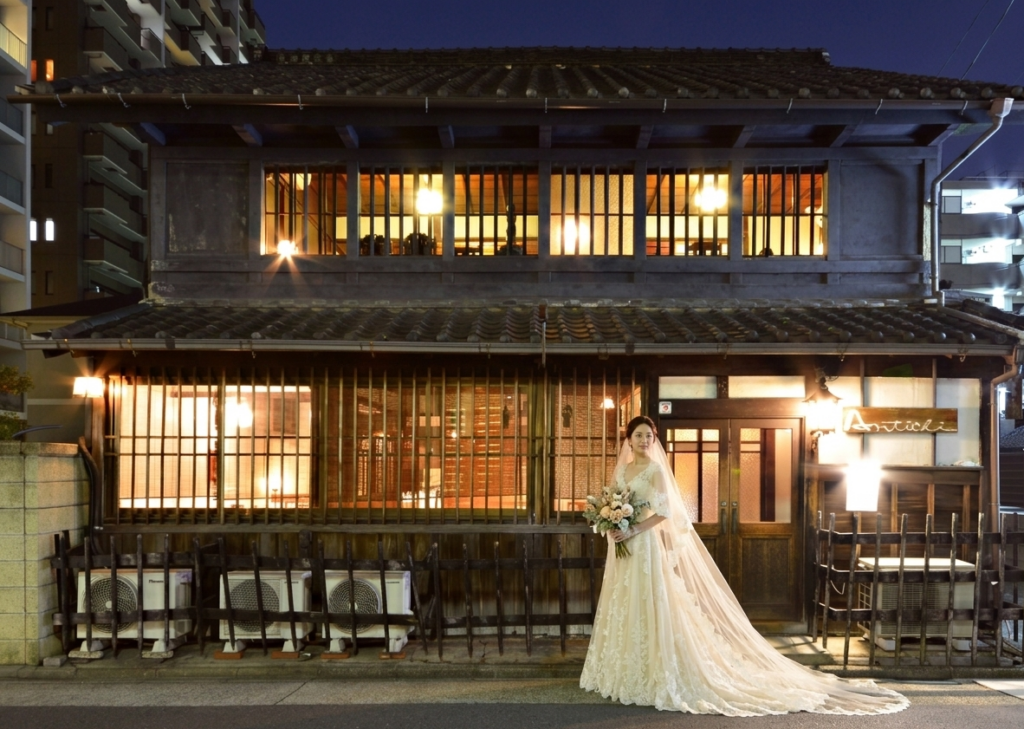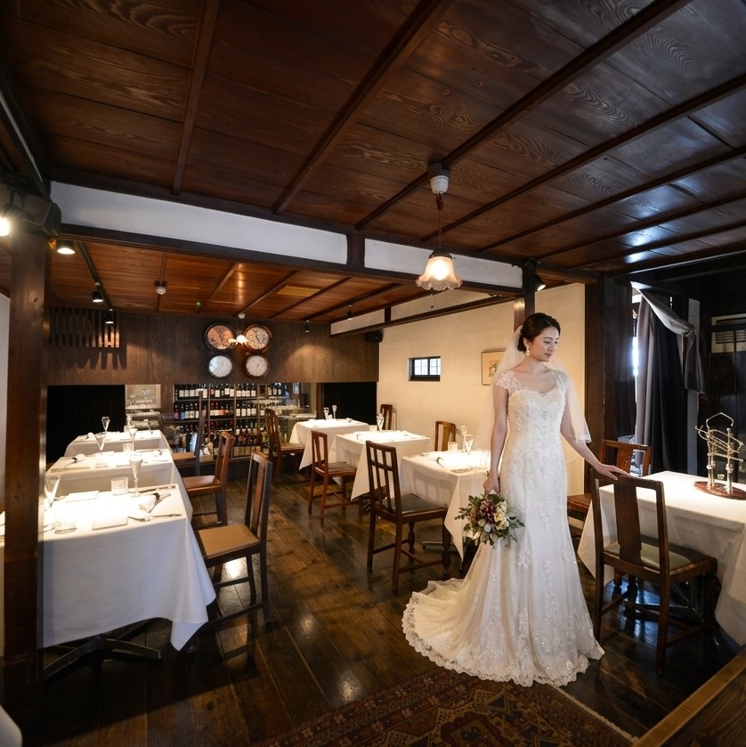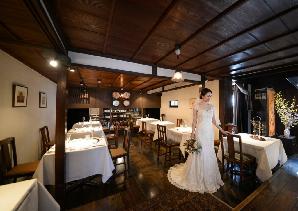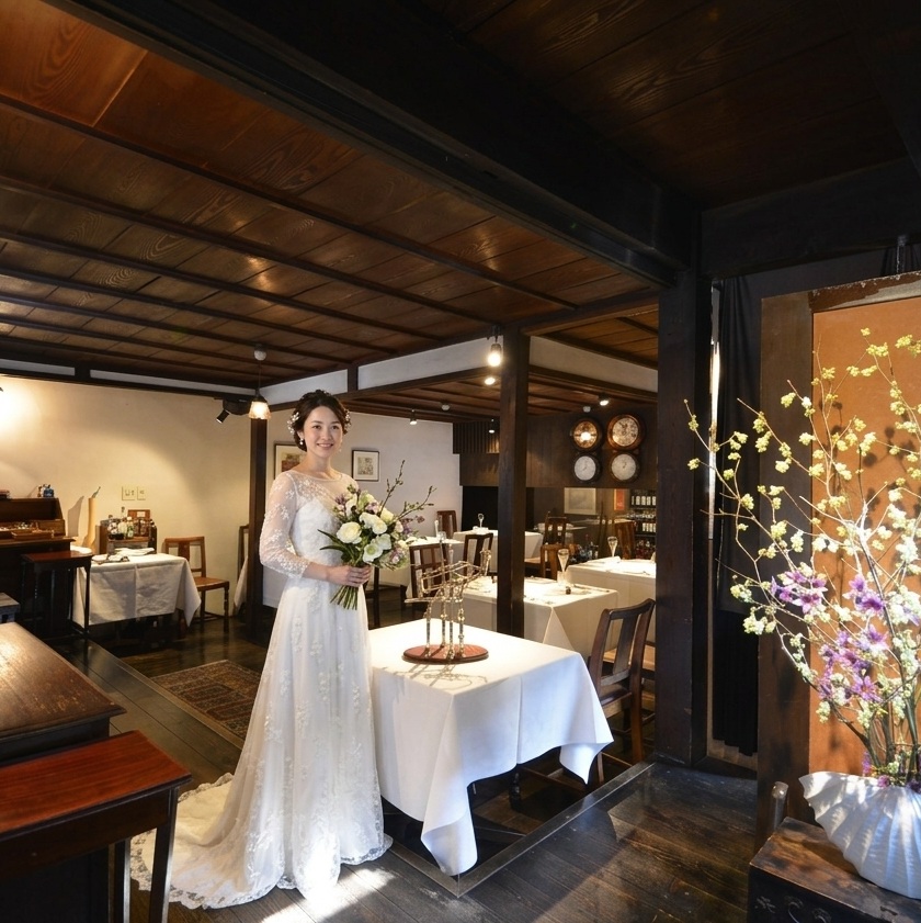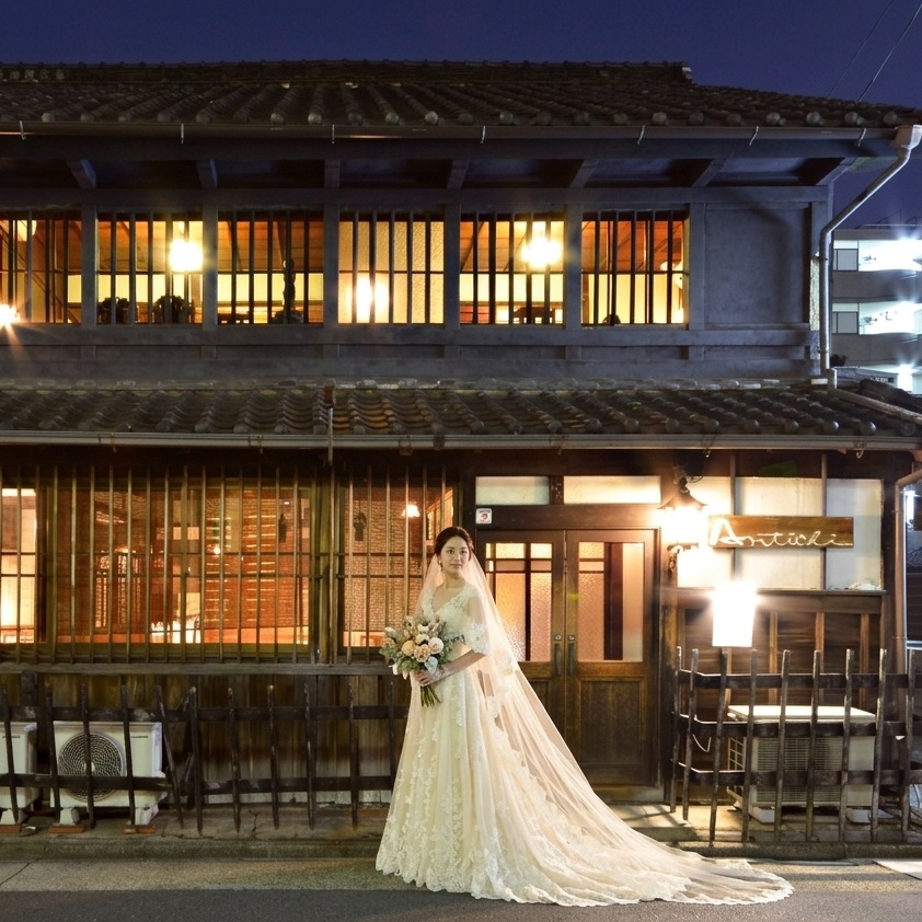 築120年の古民家を改装したレトロな雰囲気のイタリア料理店「アンティキ」。落ち着いた和の空間でお二人を祝福する宴の時間をゆっくりお楽しみください。